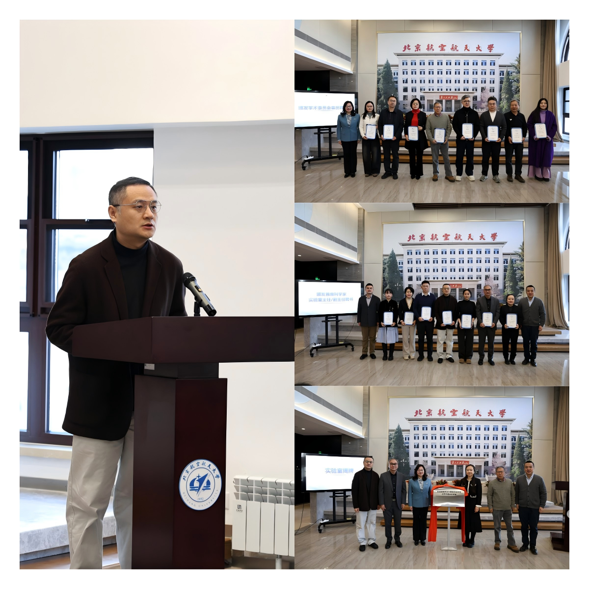 实验室主任胡勇教授汇报了发展规划,明确了从技术突破到产业应用的全链条创新目标。随后,相关领导与嘉宾共同为实验室揭牌,现场还举行了学术委员会委员、首席科学家及实验室核心成员聘书颁发仪式,汇聚行业顶尖智慧助力实验室建设。