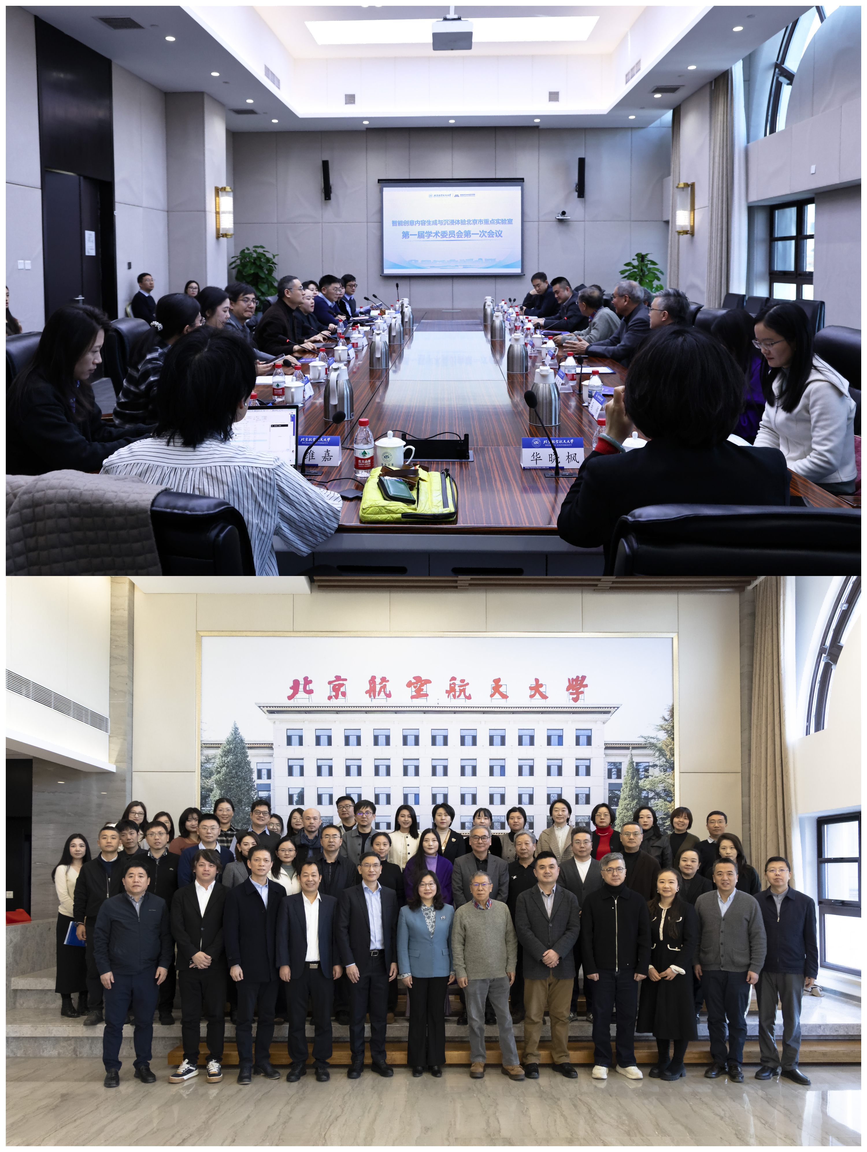 近日,由北京航空航天大学新媒体艺术与设计学院牵头建设的“智能创意内容生成与沉浸体验北京市重点实验室”成立仪式、第一届学术委员会第一次会议暨闭门学术交流活动在北京航空航天大学校友之家举办。北京市科委、中关村管委会相关领导,高校专家学者,合作单位代表北航副校长邓怡及相关职能部门负责人、新媒体艺术与设计学院师生代表共同参与活动。
