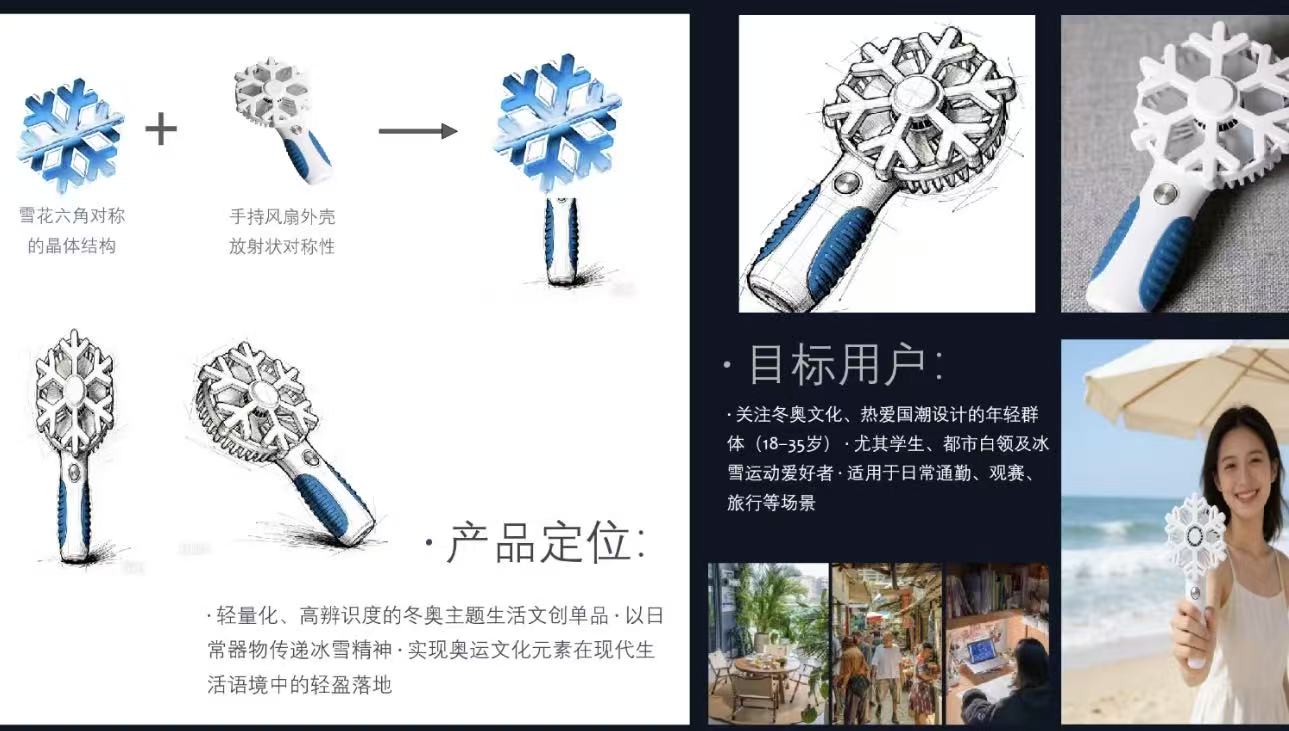 博士生王紫桐代表学生团队,系统展示了包括双生IP“雪腾腾&冰骁骁”在内的34件文创作品,涵盖IP形象、首饰设计、生活用品、非遗衍生、数字游戏等七大品类,全方位呈现了北航师生在传统与现代融合、科技与艺术共生方面的设计探索。团队在创作中充分考量年轻人审美喜好与消费习惯,在造型风格、品类选择上贴合当代青年潮流诉求,以年轻化表达吸引其关注与购买,同时巧妙植入中国传统文化、奥运精神及全民体育理念,实现文化传播与市场价值的双向赋能。其中,核心IP“雪腾腾&冰骁骁”以“雪如意”文化延续为核心,雪腾腾源自故宫太和殿脊兽“天马”,凸显向上奔跑的动感活力;冰骁骁借鉴金中都铜坐龙造型,经简化卡通化处理后兼具中式瑞兽气质与当代审美,实现了传统文化符号的创新表达。