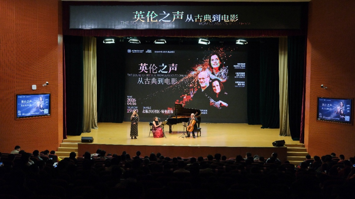 416日晚,北航美育中心特邀美育演出《英伦之声:从古典到电影》音乐会在沙河校区咏曼剧场举办。钢琴演奏家柯雷莉娅·伊茹森(CLELIA IRUZUN)、大提琴演奏家尼克·罗伯茨(NICK ROBERTS)和单簧管演奏家雪莱·莱维(SHELLEY LEVY)三位艺术家联袂献艺,为北航师生奉上一场跨越古典与光影、融合经典与时代的唯美音乐盛宴。